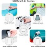 The air pump also has multiple nozzle attachments, which allow you to inflate or deflate different types of gear. These attachments include a universal nozzle for inflating air mattresses and camping pads, a nozzle for inflating rafts and other inflatable water toys, and a nozzle for deflating gear quickly and easily. This versatility makes it a great option for anyone who enjoys camping, picnicking, or other outdoor activities.