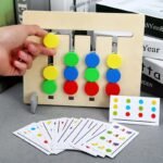 The toys feature a double-sided design, with one side depicting different fruits and the other side displaying their corresponding colors. The child’s task is to match the fruit with the correct color. This helps to develop their matching and logical thinking skills, as well as improve their memory and concentration. As children progress, they can also use the toys to learn the names of the fruits and their colors.