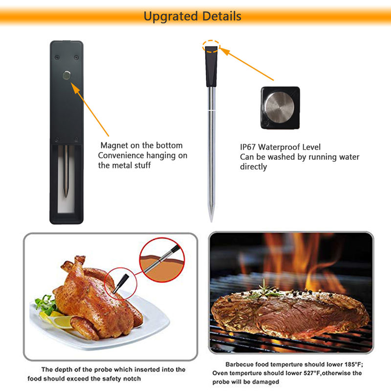 Wireless Digital Bluetooth Barbecue Upgraded Meat Thermometer is an advanced and versatile tool that will take your grilling, smoking or roasting game to the next level. With its wireless capabilities and advanced features, you can easily monitor the temperature of your meat and cook it to perfection every time. It is an essential tool for any serious grill master or home cook.